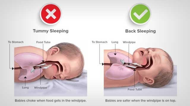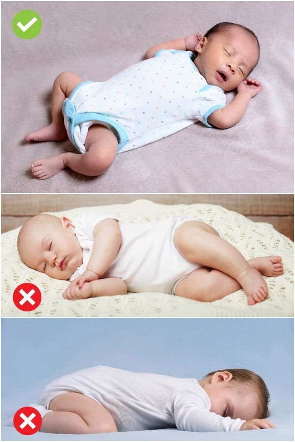 Правилната позиция е настрани, защото при рефлукс чо гръб ще се задави със собственото повърнато (като при пияниците). Иначе само трябва да се внимава да не е прекалено настрани, та да се катурне по корем и да се задуши.