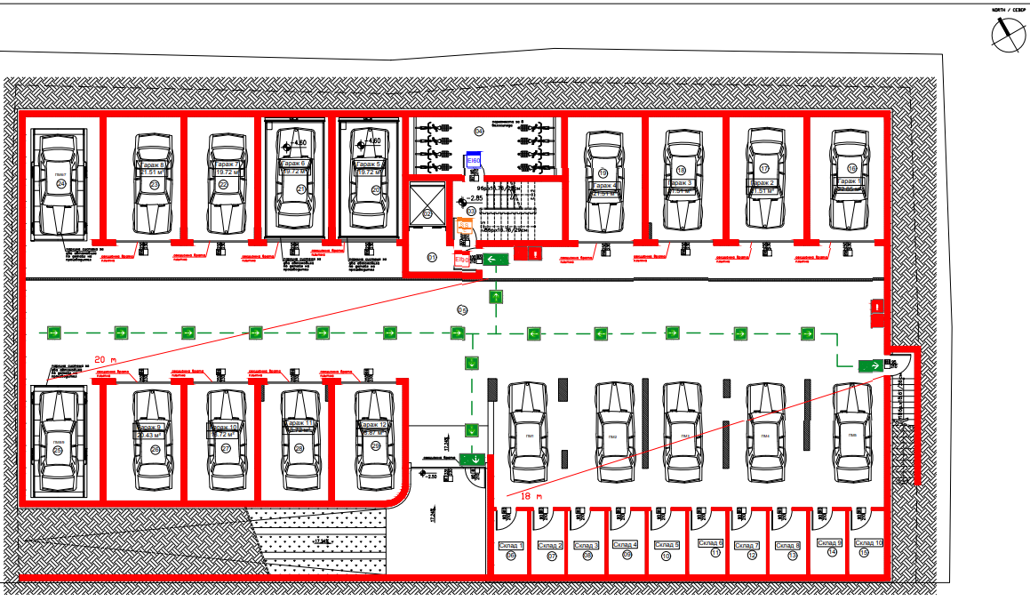 Ето евакуационен път на нашите гаражи от проекта, който споменах. Единият отива към стълбището на входа. Ако там обаче има система с чип и паник бутон за отключване при липса на захранване не виждам проблем да се "заключи", НО най-вероятно пак с достъп от всички. Както teta писа Пожарната трябва да даде становище. АКО Вие имате %ид.ч. върху кота сутерен, не могат да не ви дадат ключ и да Ви ограничат достъпа също!