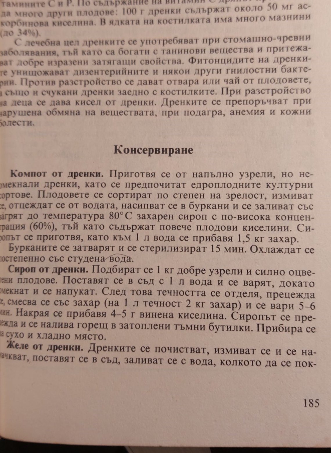 Правя компот, но не по тази технология. На буркан тип омния 1,2 л пълня малко повече от 2/3 от обема с плодове и слагам 7-8 с.л. захар. Захарта зависи от сладостта на дренките. Стерилизация - 20 мин. За 1 година ги употребявам. Костилковите компоти не е хубаво да престояват повече от 1 година.