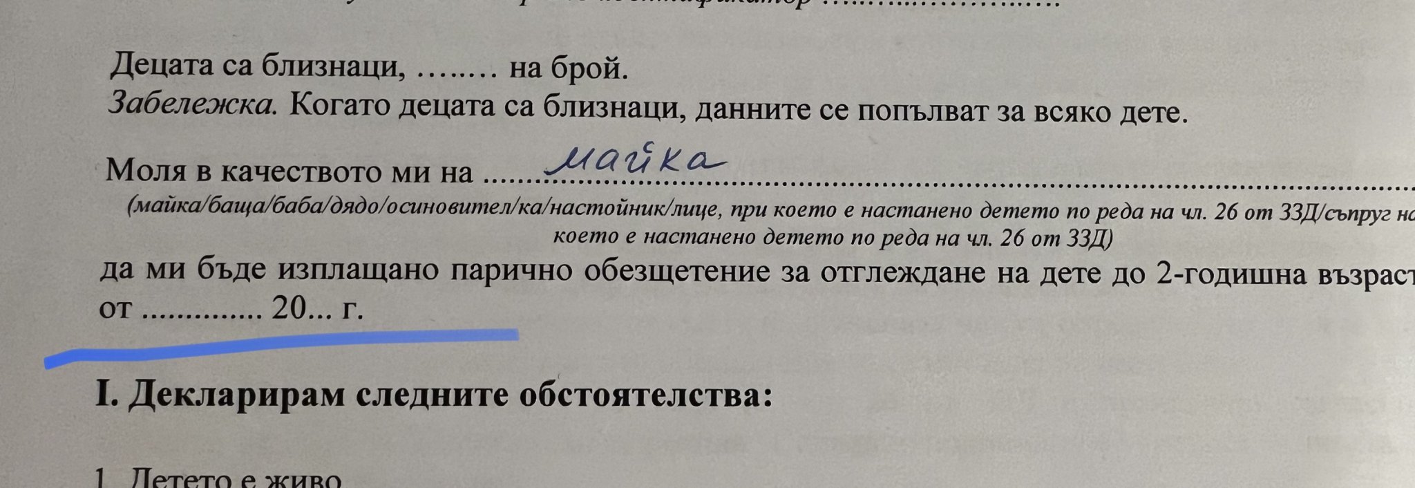 Попълвам декларацията за отглеждане нс дете за втората година и имам питане: в “считано от” се попълва датата на термина или датата на раждане на детето или друго?