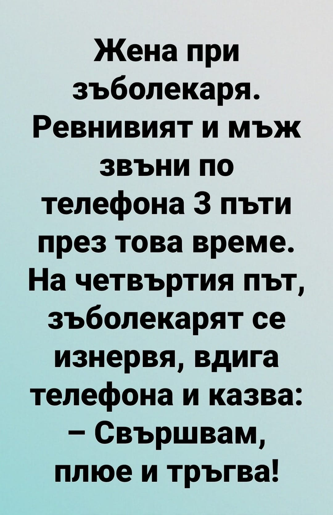 В този момент съпругът нервно започва да си гризе ноктите ....
