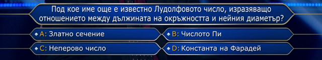Въпросът за числото Пи е за не повече от 200 лева. Като се има предвид, че участниците са пълнолетни и би трябвало да са минали през шести клас.