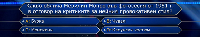 Ама нелепо изгоря на въпроса за Мерилин Монро.......