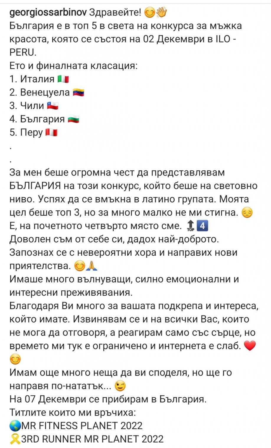 От мен получава титлата за втори най-неприятен победител след Добрин. Според изявите му след предаването може и да го мине, макар че там летвата е доста висока.