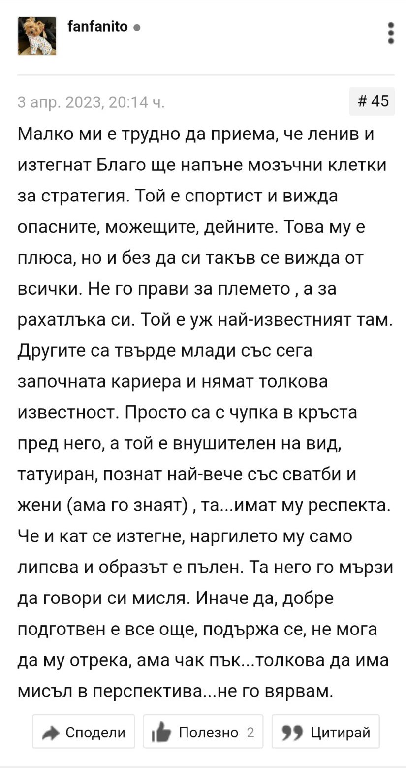 Написах нещо за Благо, че не е стратег и ме докладваха и изтриха.