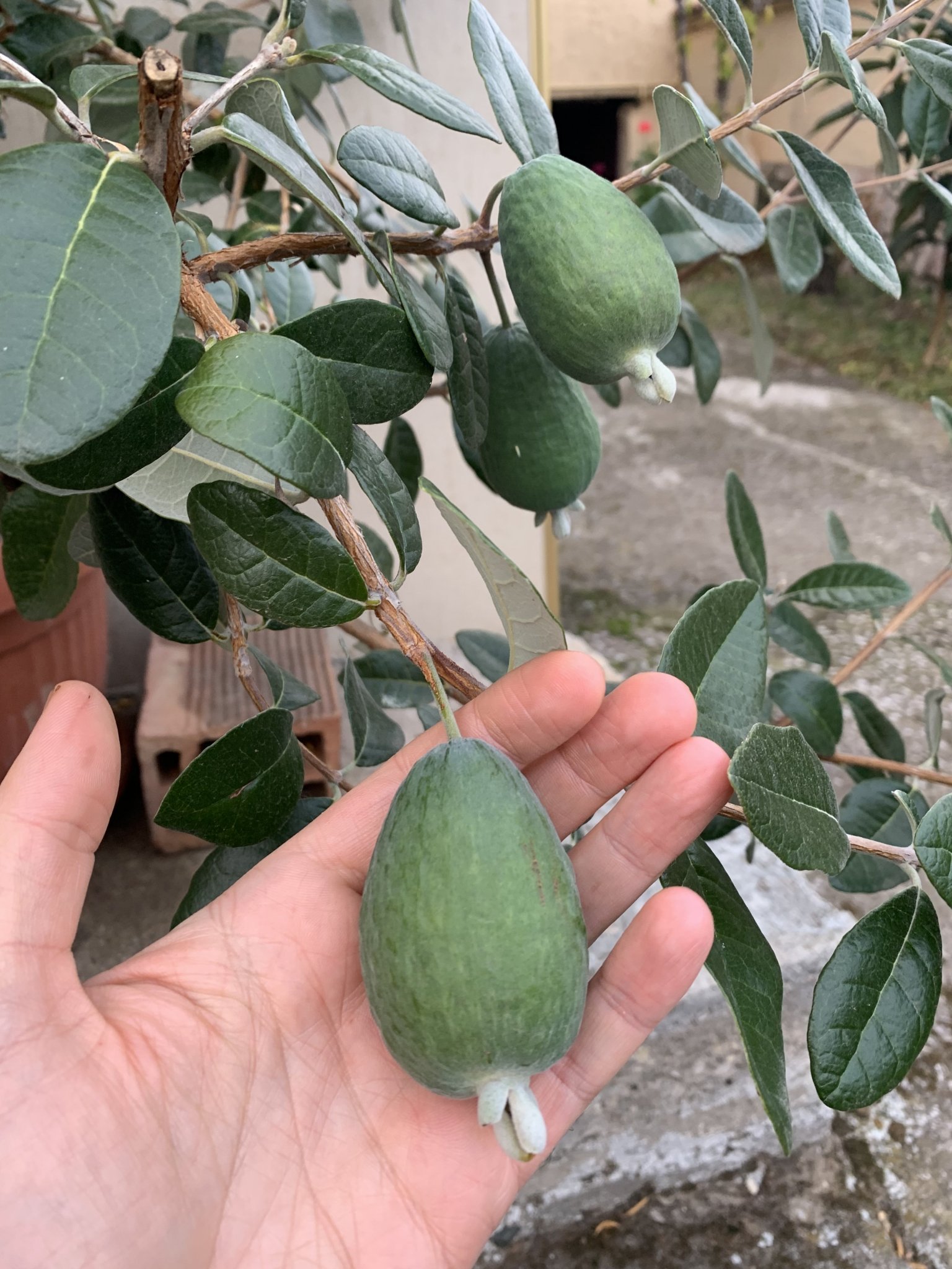 Фейхоа от семка, понеже някой беше питал за плодове с йод, води се, че е богата. Тази обаче ще я изхвърля, защото се оказа, че много късно зрее, още не е почнала, а другата на двора узря преди месец: