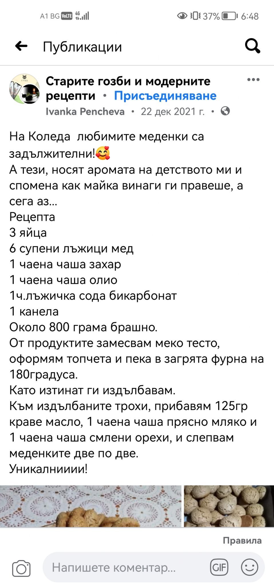 Лурдес, ето рецептата, от фейсбук е. След като се слепят е добре да постоят два дни, за да омекнат. Колкото повече стоят, по-хубави стават.