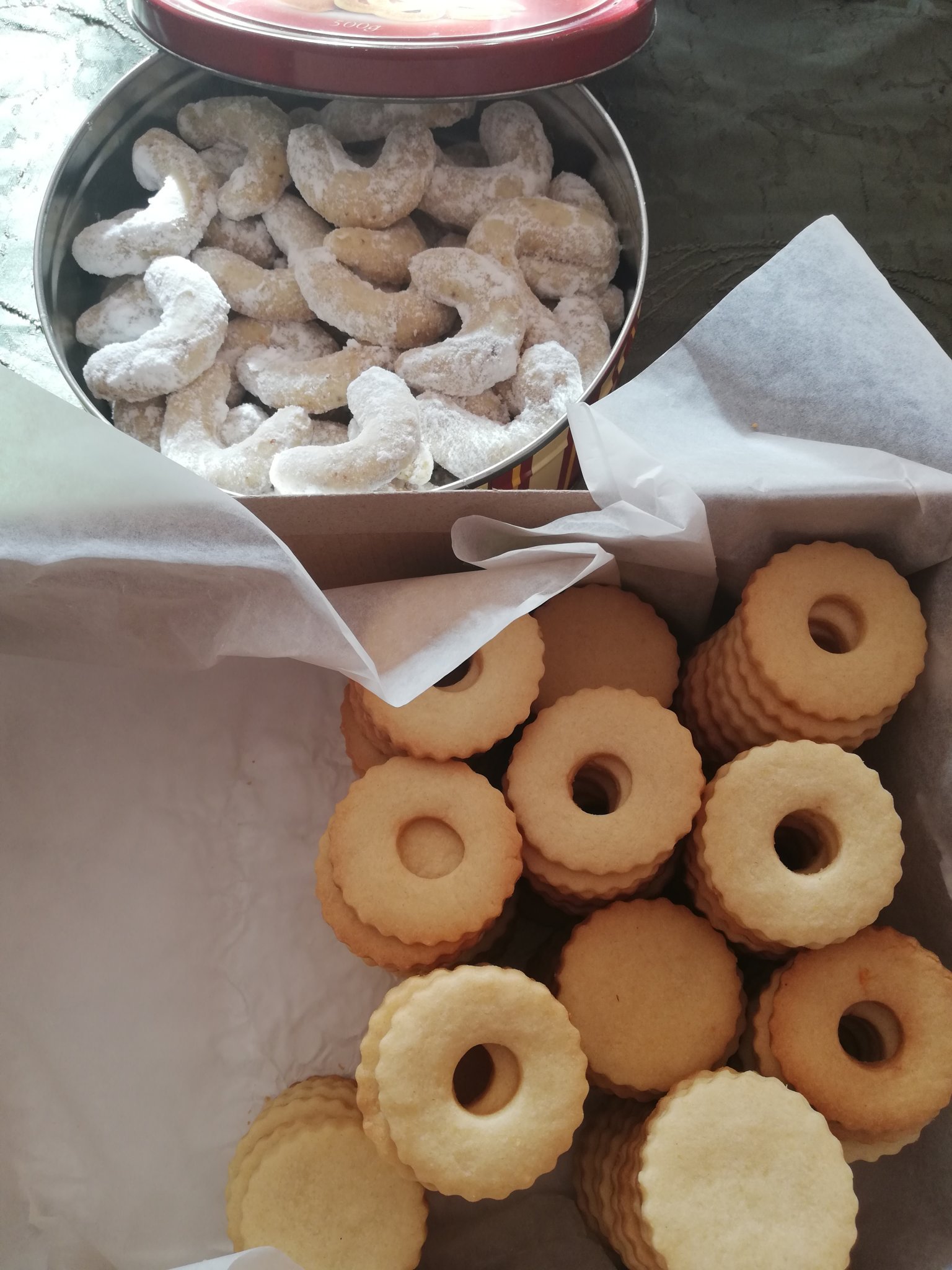 Закъснях тази година със сладките. От днес линцери, рохлички . В хладилника чакат канелените бисквитки на Мики и маслените бисквитки с боровинки на Марчева.