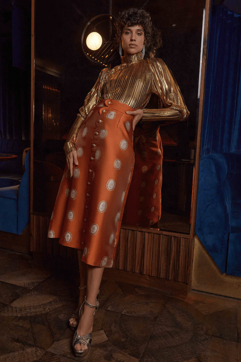 Кожената пола може да се съчетае с различни материи като пуловери, ризи, блузи, коприна или фин памук. Освен това може да се комбинира с топ без ръкави, лека жилетка или дълга жилетка, създавайки интересно монохромно съчетание. Важно е да избягвате съчетаването с тежки материи, за да запазите елегантния и стилен вид на тоалета.
