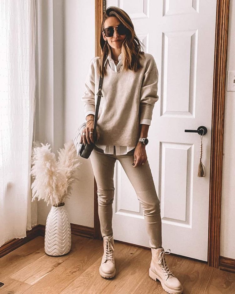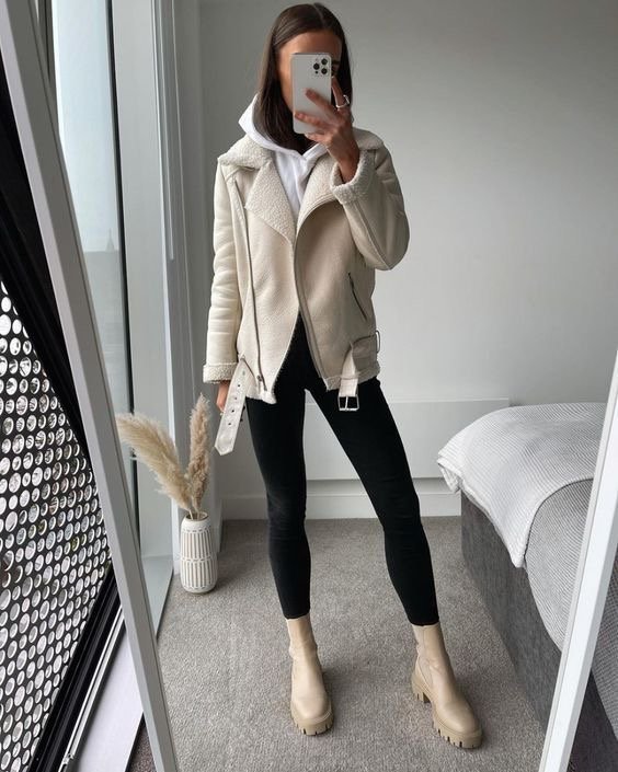 Светлите боти- задължително с яке или палто в техния цвят или поне обемен шал. Иначе биха стояли като кръпка в цялостната визия.