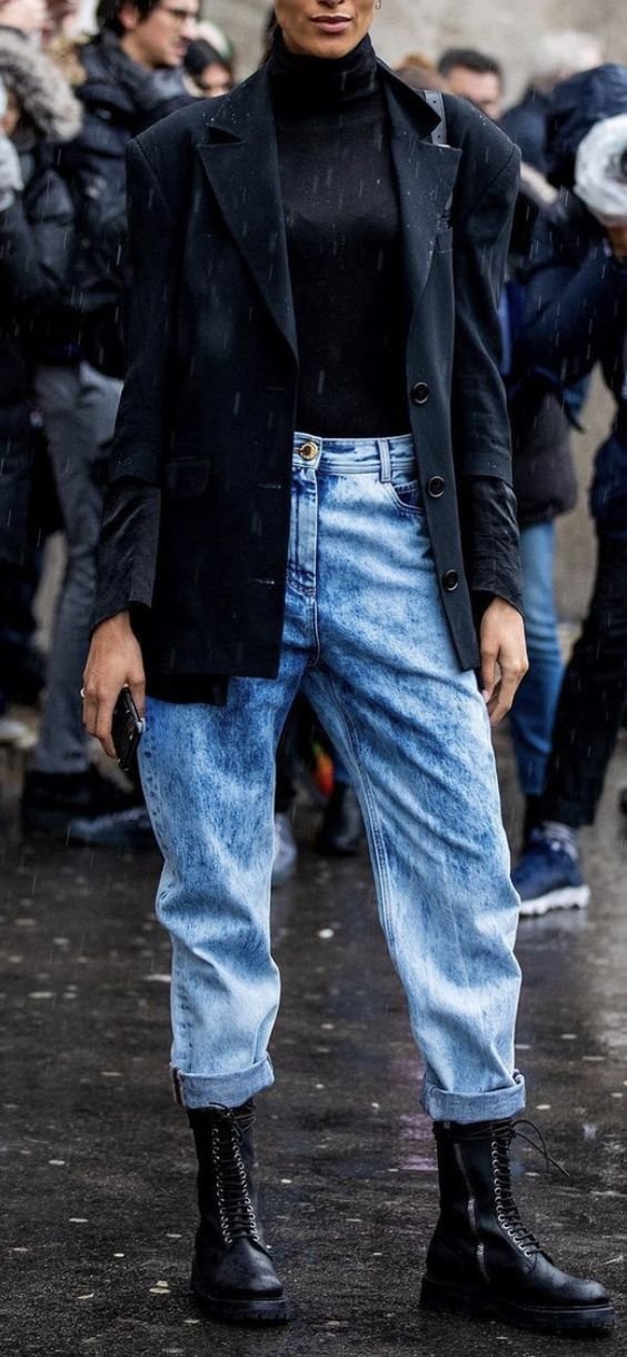 С какви дрехи мога да нося дънки с висока груба подметка?