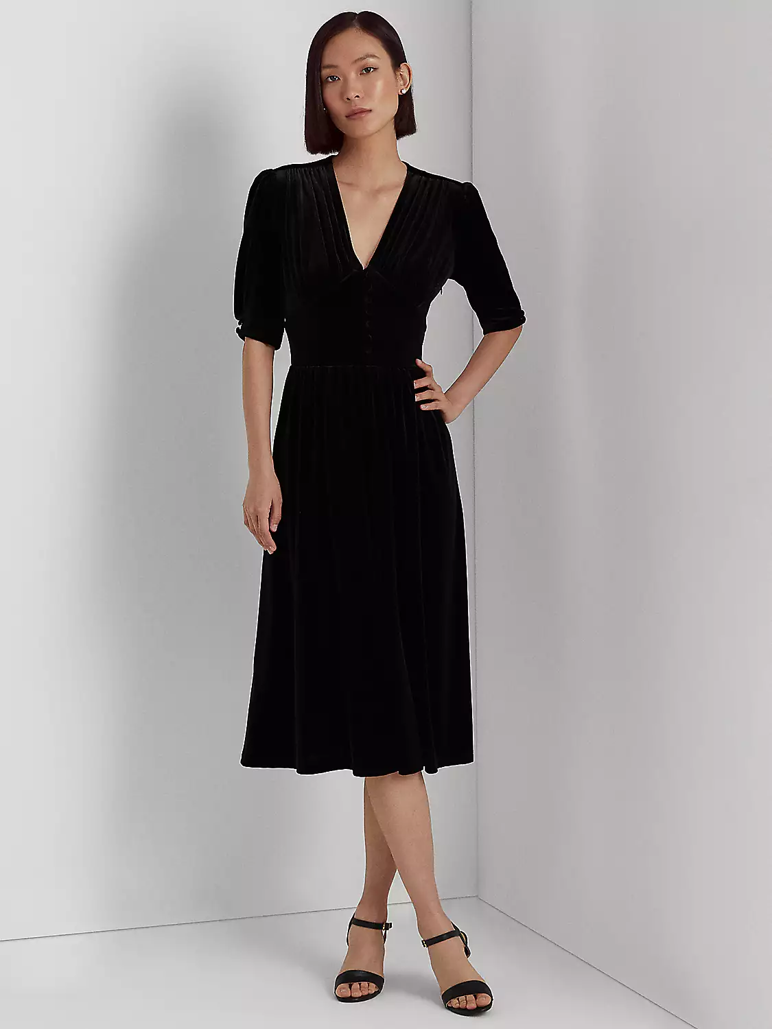 Какви обувки са подходящи за съчетаване с черна коктейлна рокля със златни пайети?