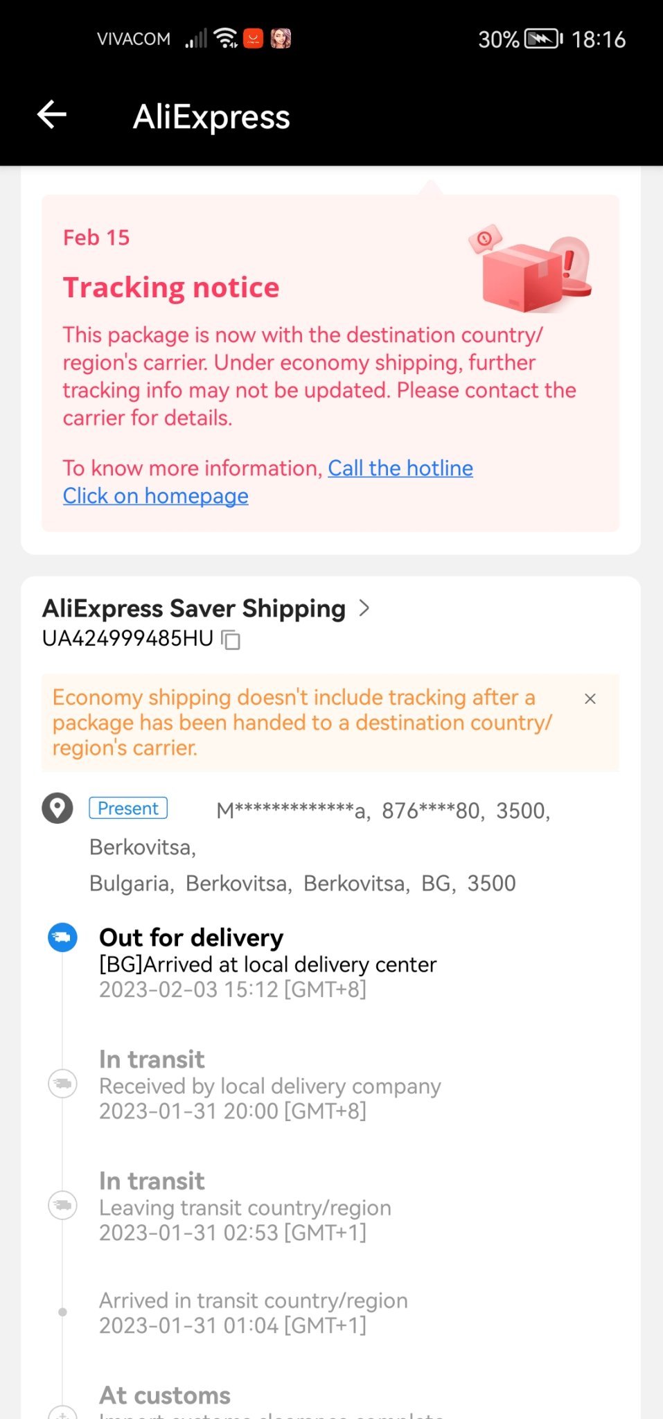В Унгария е, Експрес Уан. Според мен е загубена, за да няма толкова време движение. Пишете им или си пуснете направо диспут.