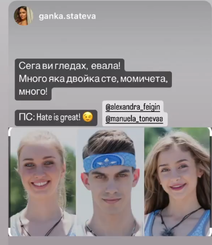 Ганка от последния Сървайвър също подкрепя Злата троица!