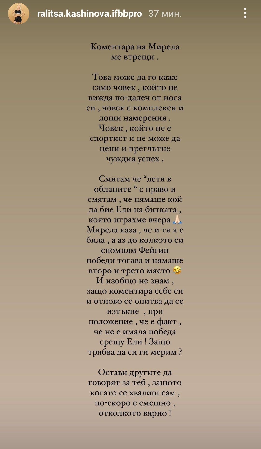 Хубав коментар на Рали за Мирела. Право в целта. Гледах част от лайфа на Рали и Елица. Разговор между две шампионки и двете бяха на ниво. А Рали има много хубаво коте, което искаше да участва в лайфа също Heart EyesJoy