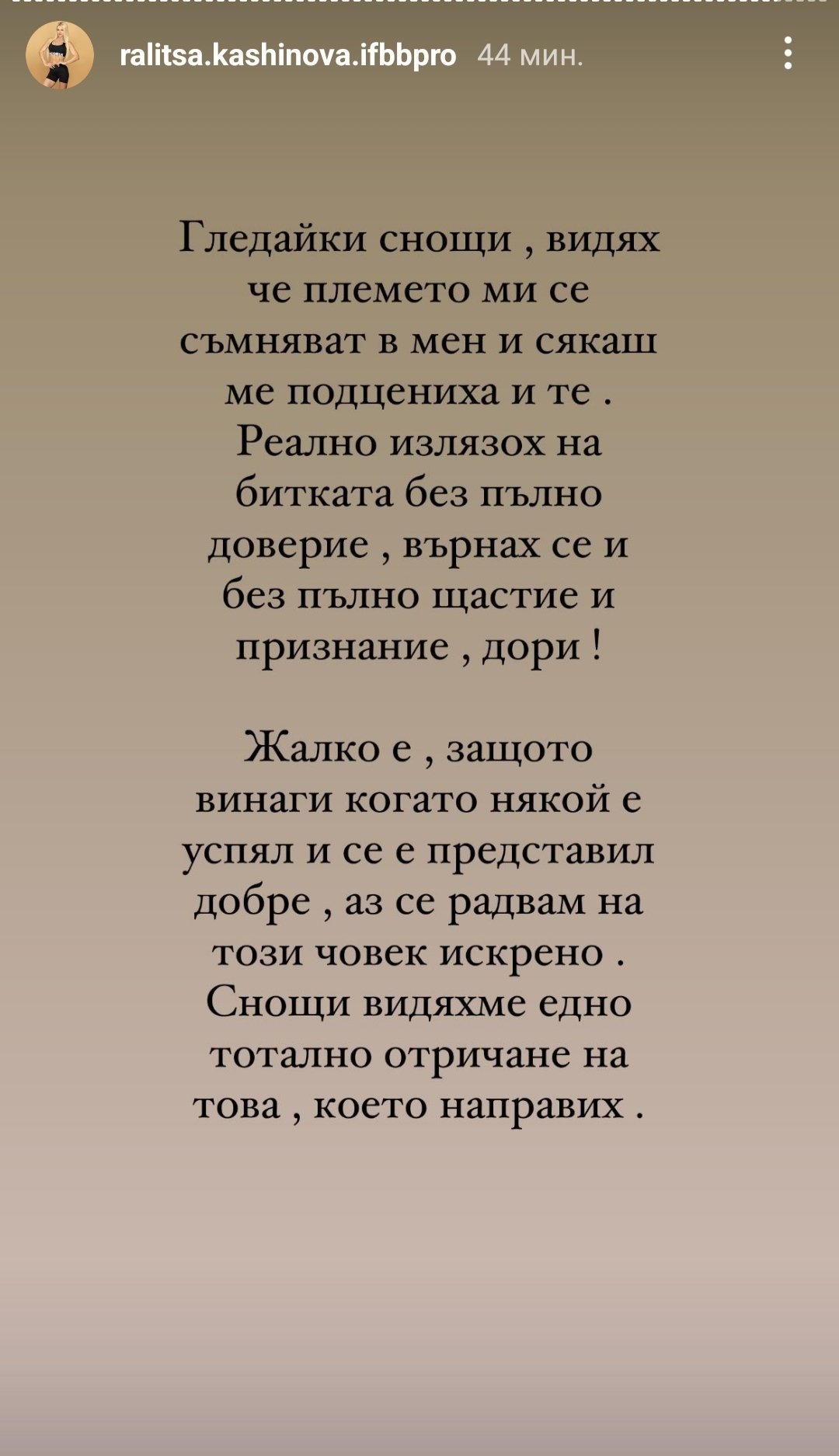 Изгледах им лайфа. Много свястно и чисто момиче е Ралица. Страхотно се радвам, че взе сабите и Евгения не можа да се докопа до тях.