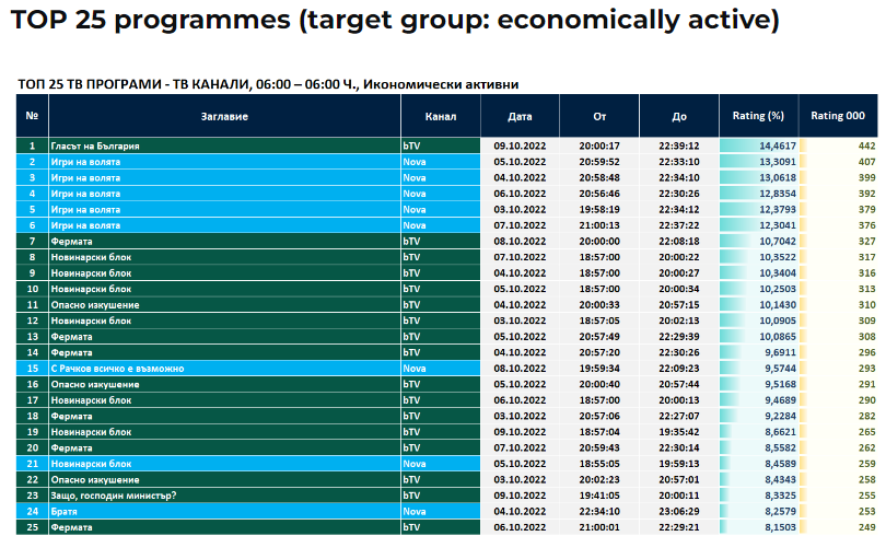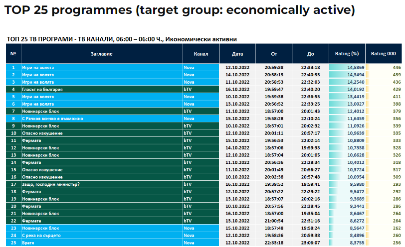 По принцип за телевизиите всичко над '12 рейтинг' е нещо изключително, смятайте сами...