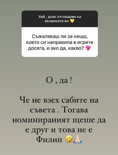 Ти и mon day ме развратихте 🤣 Спирам да влизам в темата 🤣 И докато при нея има някакви наченки на разкаяние, при теб нещо не го усещам 🤣🤣🤣