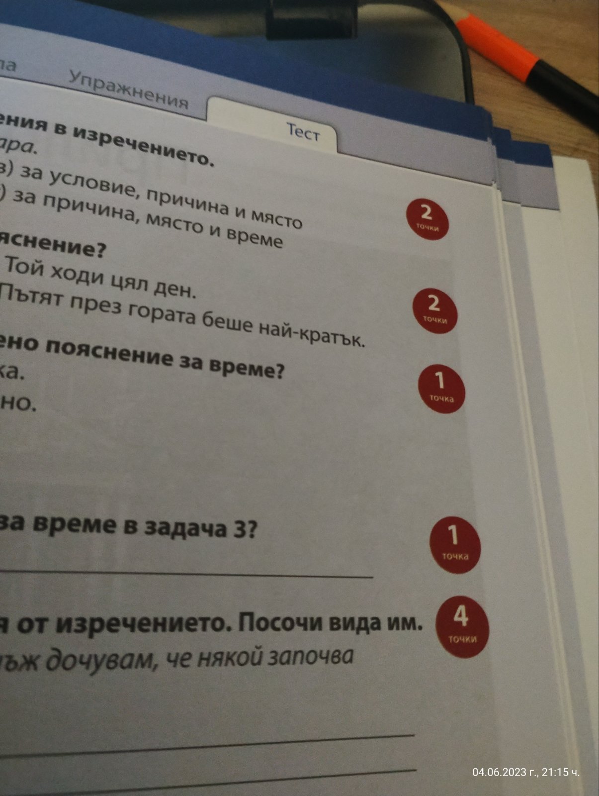 Втората е дребна, но са само тестове и кратки упражнения с отговори. Тоест, мога да го оставя да решава сам и накрая да видим отговорите. Имам и на г-жа Донка Кънева за 5 и 6 клас. Тях аз много ги харесвам, защото са задълбочени и с много примери и допълват информацията в учебниците. Обаче  - имат частично отговори - и за да мога да го проверя, трябва да изуча заедно с него учебника. Което не винаги ми е възможно. Затова се спрях на тестове, упражнения - с отговори. Защото са по-кратички и сам може да ги решава. Особено цветната книжка е с интересни текстове, и , например, местоименията, паронимите, омонимите .... /в зависимост какво се учи в урока/ са оцветени в цветно в текста. Вадят ти очите и няма как да ги пропуснеш. Виж втората снимка как са оцветени.