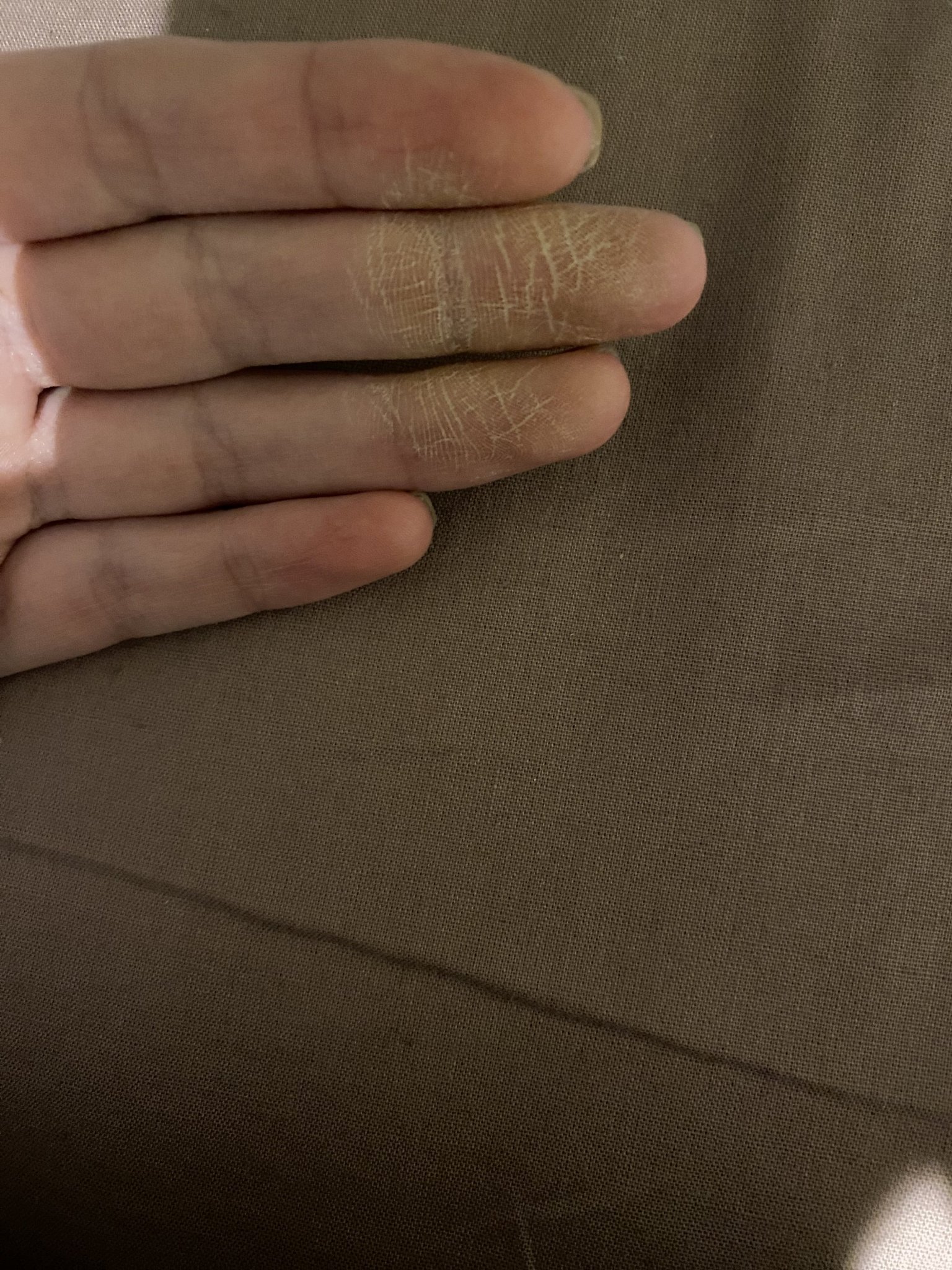 Един бърз въпрос имам, на който не мога да си отговоря, а не ми се иска да опирам чак до лекари за него. Появи се проблем на пръстите на ръката ми. Изведнъж станаха адски сухи, болезнени и напукани, прилагам снимки: