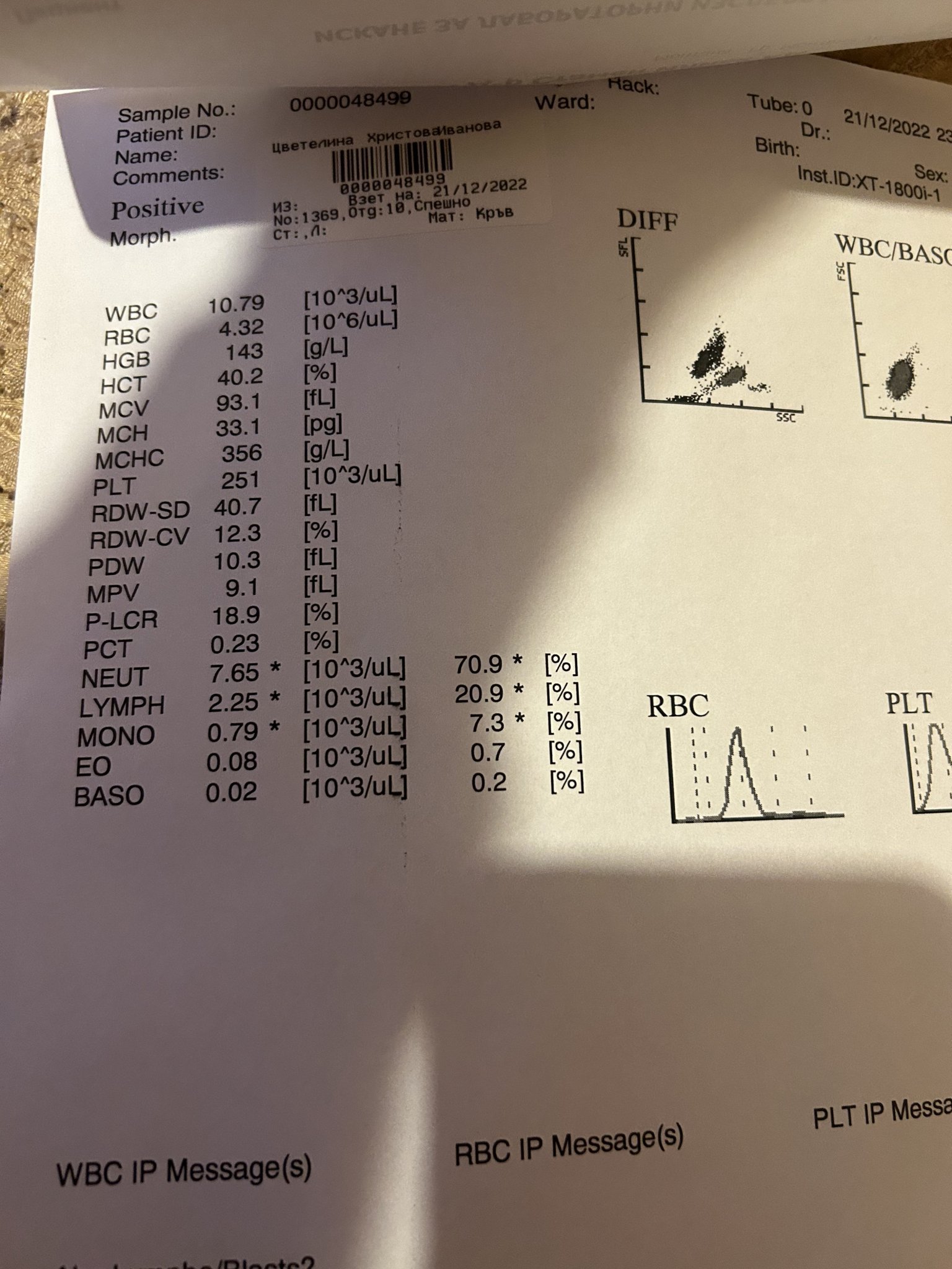 Левкоцитите ти са завишени, sunflower. Имаш някаква инфекция.