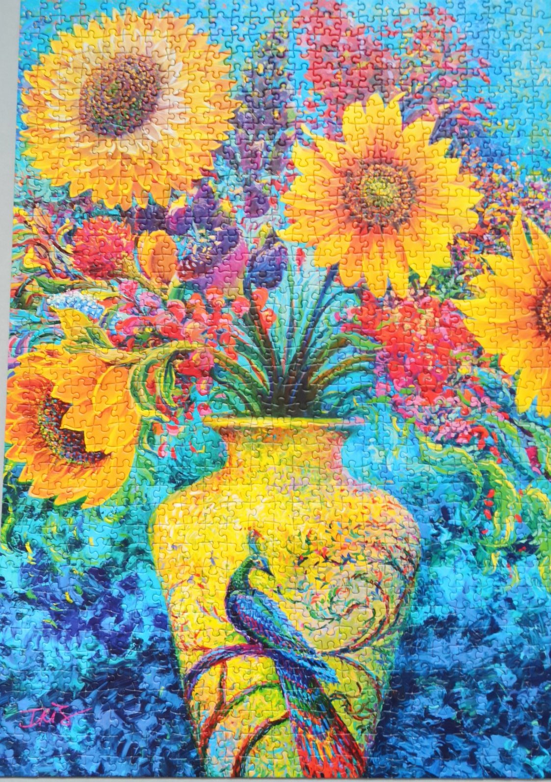 Ето и красотата на слънчогледите. Разкошен пъзел. Мнението си за трудността го казах, но все пак сумарно за 5 дни го наредихме, като 2 дена по-усилено. Пращам го към следващия.