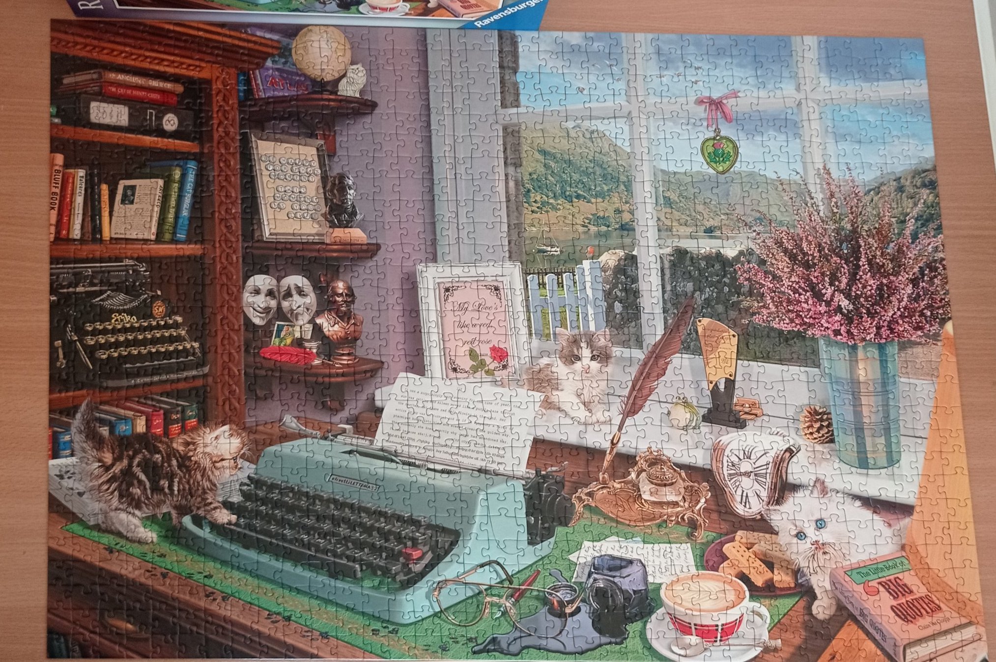 Забелязала съм, че когато редя някой пъзел, който ми върви трудно и ми минава цялостно желание за пъзели😁 Та сега разбирам защо беше в дупка😉 Така бях при фона на готик пъзела, който бях показала.