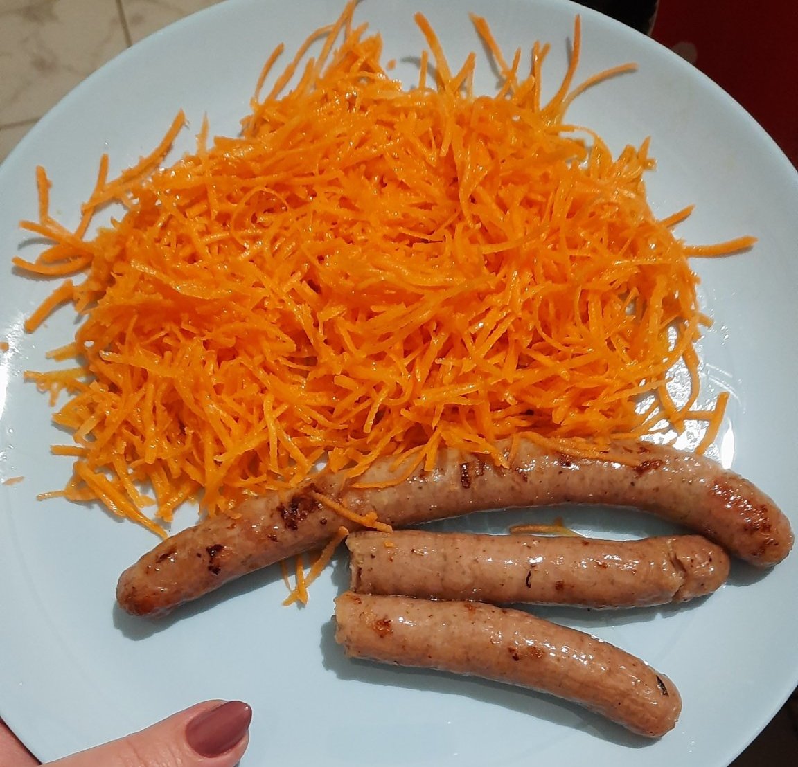 Днес ловджийски наденички и моркови: