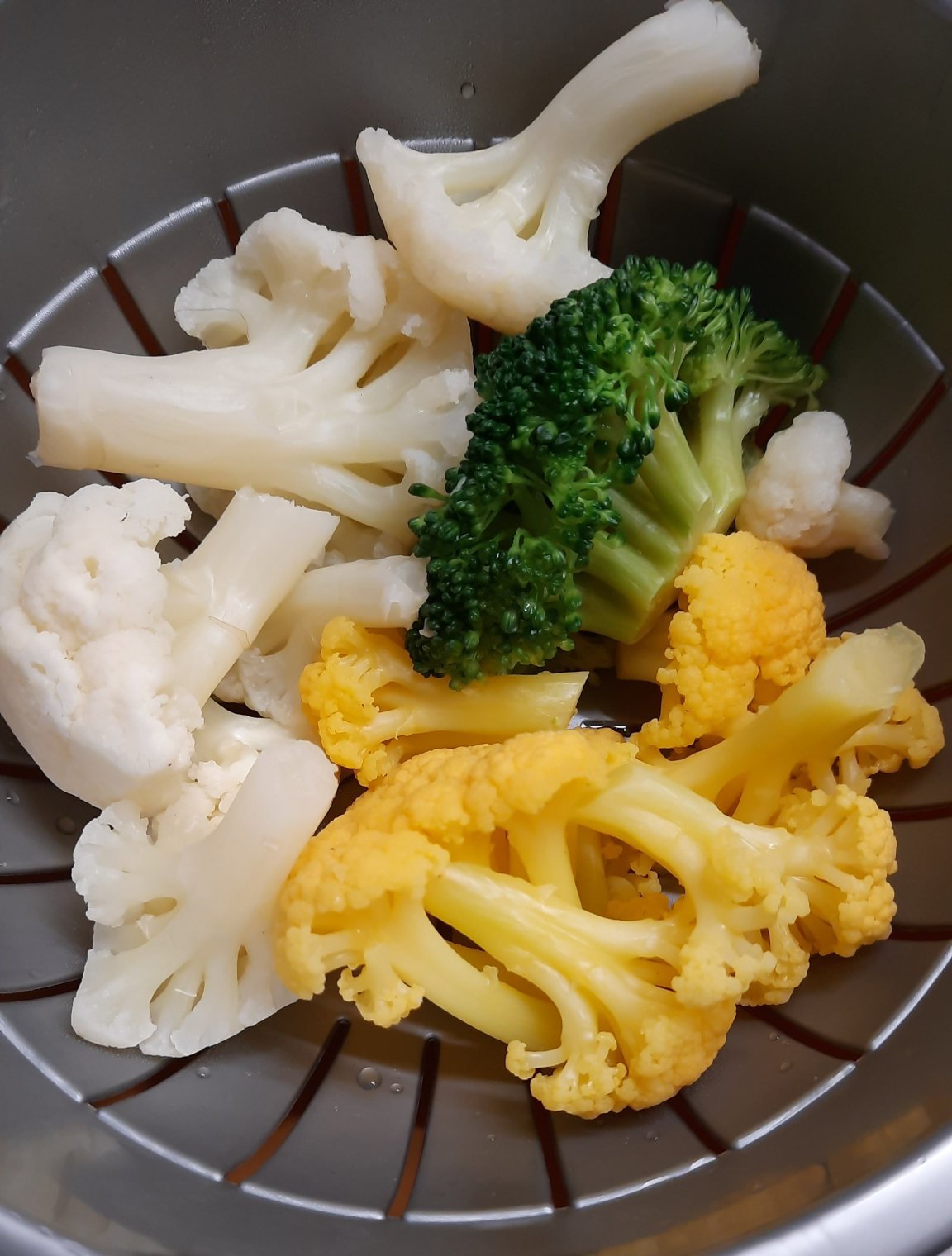 Моята вечеря снощи беше кюфтета, бял и жълт карфиол, две розички броколи, салата моркови.