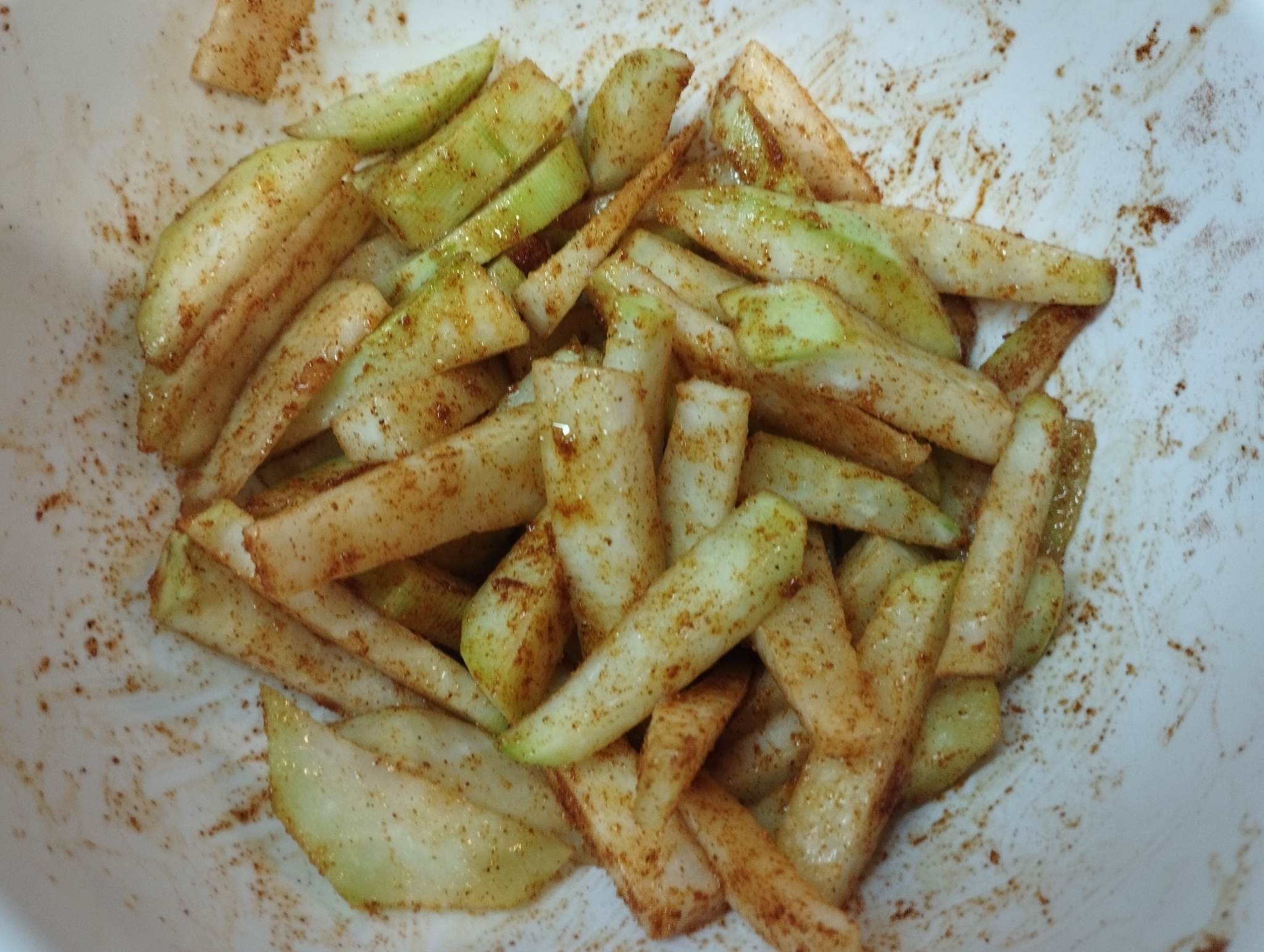 Овкусен със сол, червен пипер, чесън на прах и малко зехтин.
