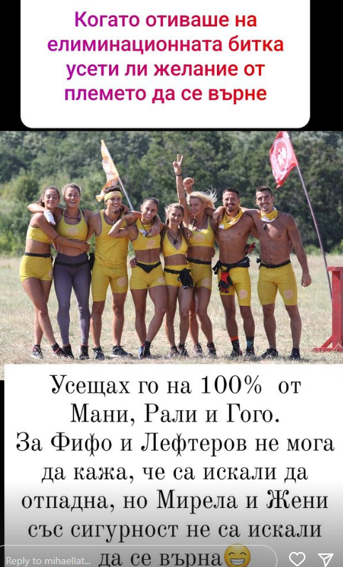 Години по-късно се пробвах няколко пъти и в Игри на волята и във Фермата. Но така и не стигнах до последния етап, който е решаващ. И им казах, майната ви и спрях. За настоящите сезони в ИВ и Фермата не съм подавал кандидатура, за последния Сървайвър щях ама ми дойде изневиделица, не го очаквах, нямаше време, а и имах много важни лични неща тогава.