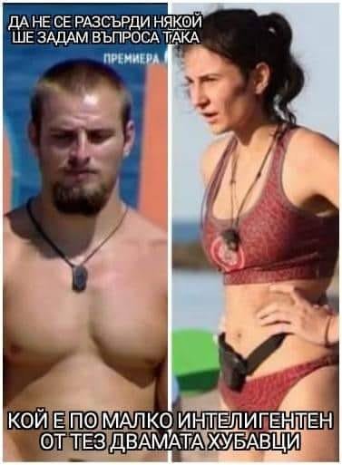 Разбирам, че освен всичко, което си призна - за умишлената провокация на Вики и Алекса с цел физическа агресия и отстраняването им, за “след Илиян няма Супергерои“ и т.н., по-скоро всичко това е било в резултат на другото - очаквал да е при жълтите, при “Готините и силните“, не само мъже, а и жени. Всъщност, надали жени, но за мъжете съм сигурна. И като се е видял при “несретниците“, и какво - давай с гегата, пък след мен и потоп. Големия “стратег“, рядко бъркам в преценка на човек, и сега не сбърках.