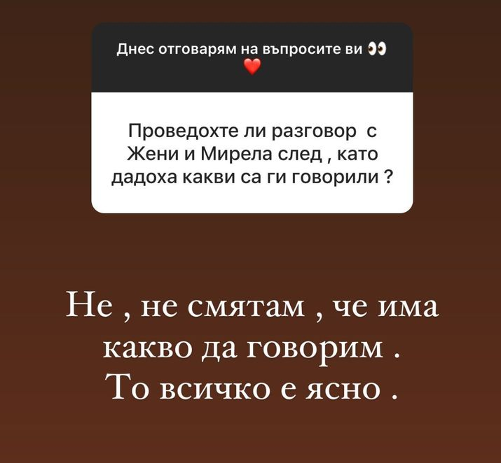 Малко прекалено ми се вижда от Рали. Тя Джаферович пред тях имаше най-грозните избухвания, а те ги приемаха. Накрая ги изиграха, нормално да не са доволни, но това е част от играта.
