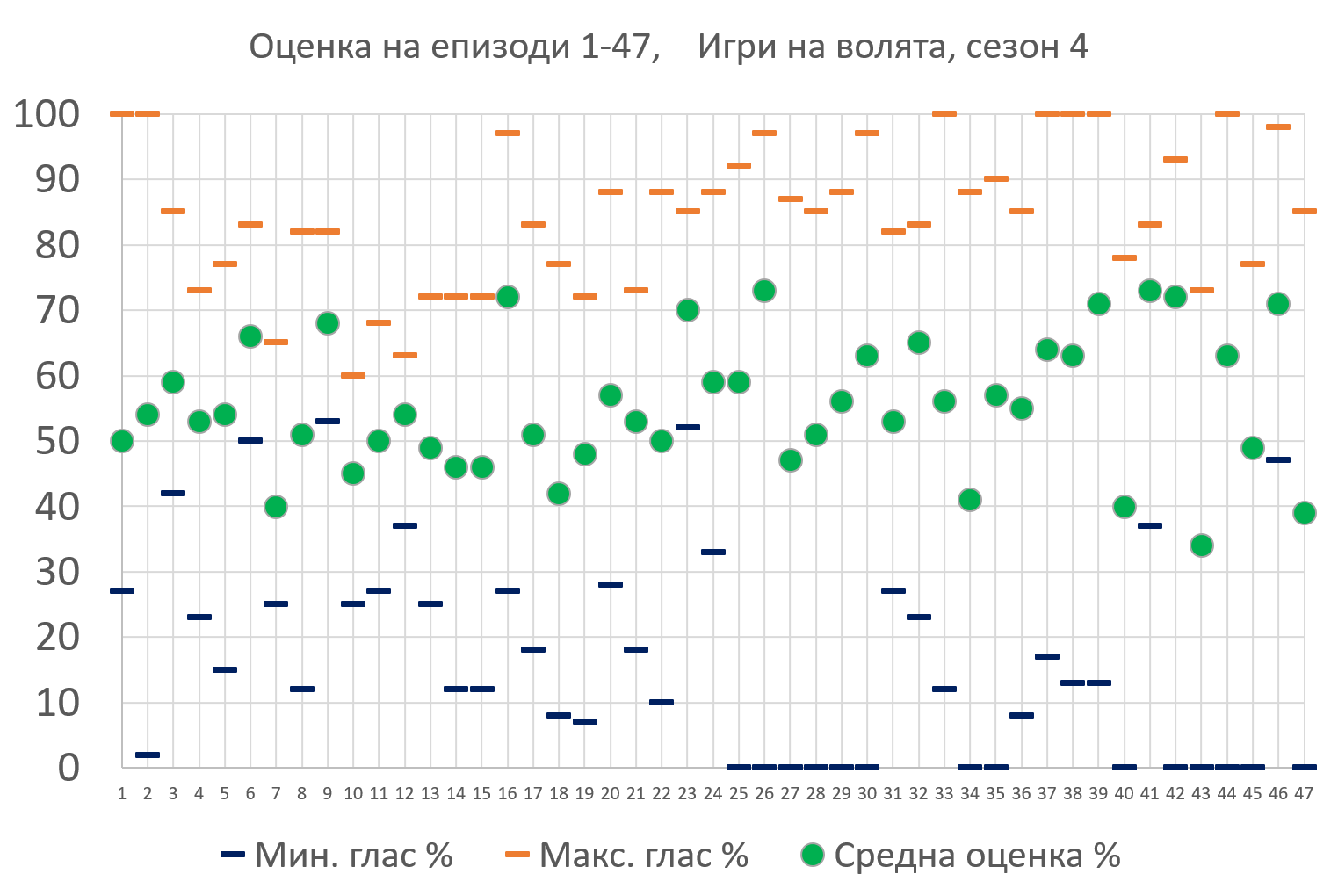 Ето и резултатите от гласуването за качество на епизод, от началото досега.