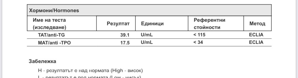 Бях на ендокринолог. Гледа ме на ехограф, жлезата ми е "нормална" за Хашимото. Няма възелчета и други изменения. Тя каза, че е трудно да се влияе върху антителата, изписа ми обаче 600мг селен на ден да опитам за няколко месеца.