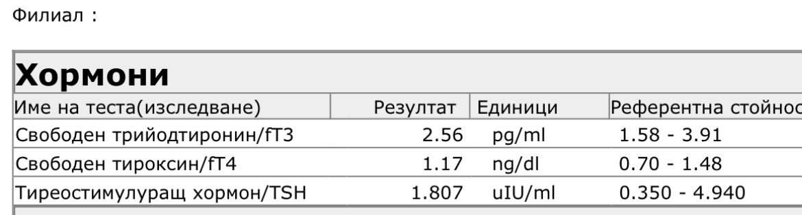 Доста е висок ТСХ, а Т4 е нисък и показва, че дозата ти е ниска. Трябва да си в интервала за ТСХ 0,5 -1,0, а Т4 да е в горните 25%( 18-20)
