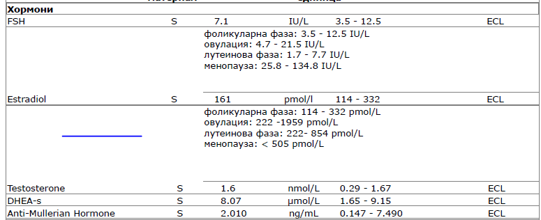 Дали мога да те помоля да погледнеш тези хормонални изследвания. Само до преди месец и половина FSH и АМХ бяха с по-добри стойности: