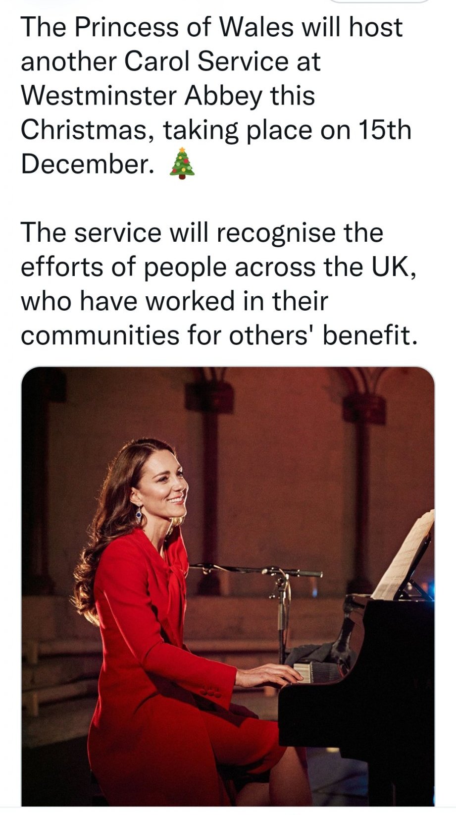 Катрин и тази година ще е домакин на Коледната служба в Устминстърското абатство на 15 декември: