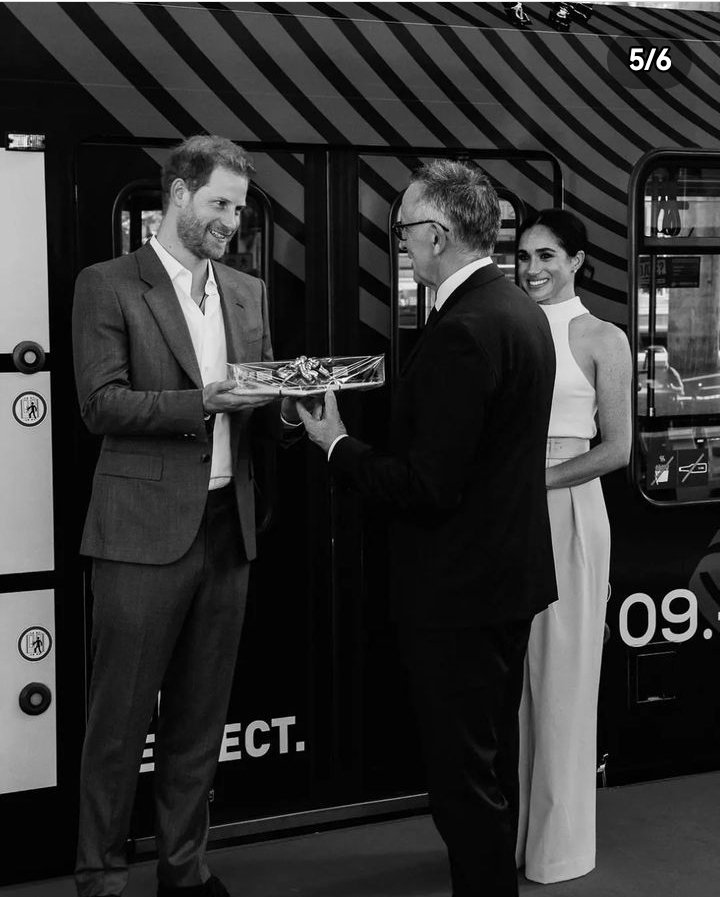Страницата на Инвиктус сподели снимки от посещението на Хари и Меган в Дюселдорф. Пуснали са в движение нов влак на компания за градски транспорт Rheinbahn и с това са отбелязали сътрудничеството си.