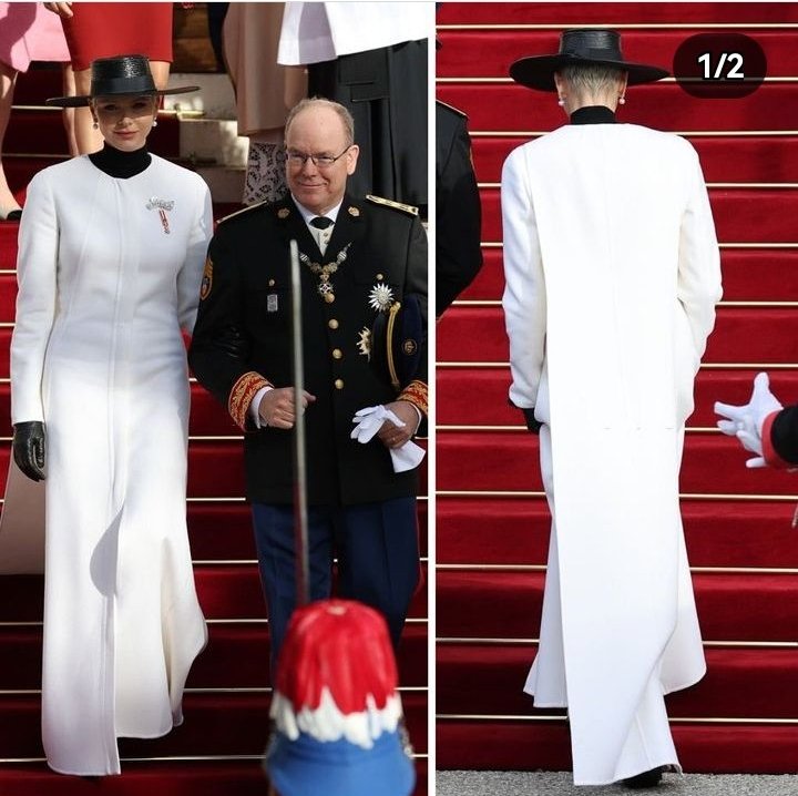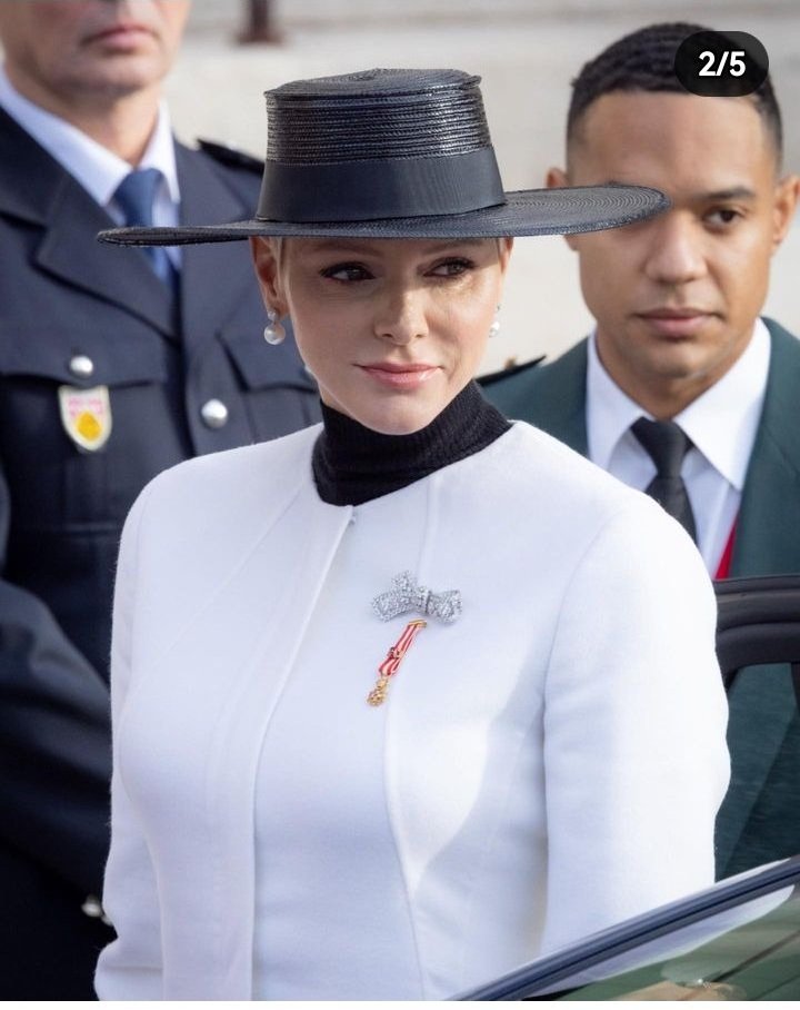 Палтото на Шарлийн ми харесва, но комбинацията щеше да е още по-елегантна с шапка от типа на винената на Беатриче Казираги.