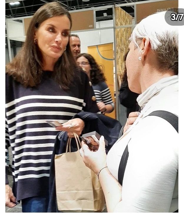 Летисия с раирания пуловер - не. Нещо не е свежа на тези снимки, може да не се е наспала, знам ли.