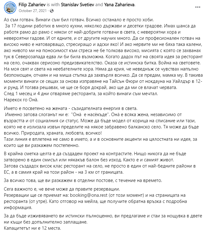 И все пак от ресторант Она казват, че не са сигурни в автентичността на имейла. Казват, че са наясно, че имейлът може да е фейк и някой да си прави шега с тях.