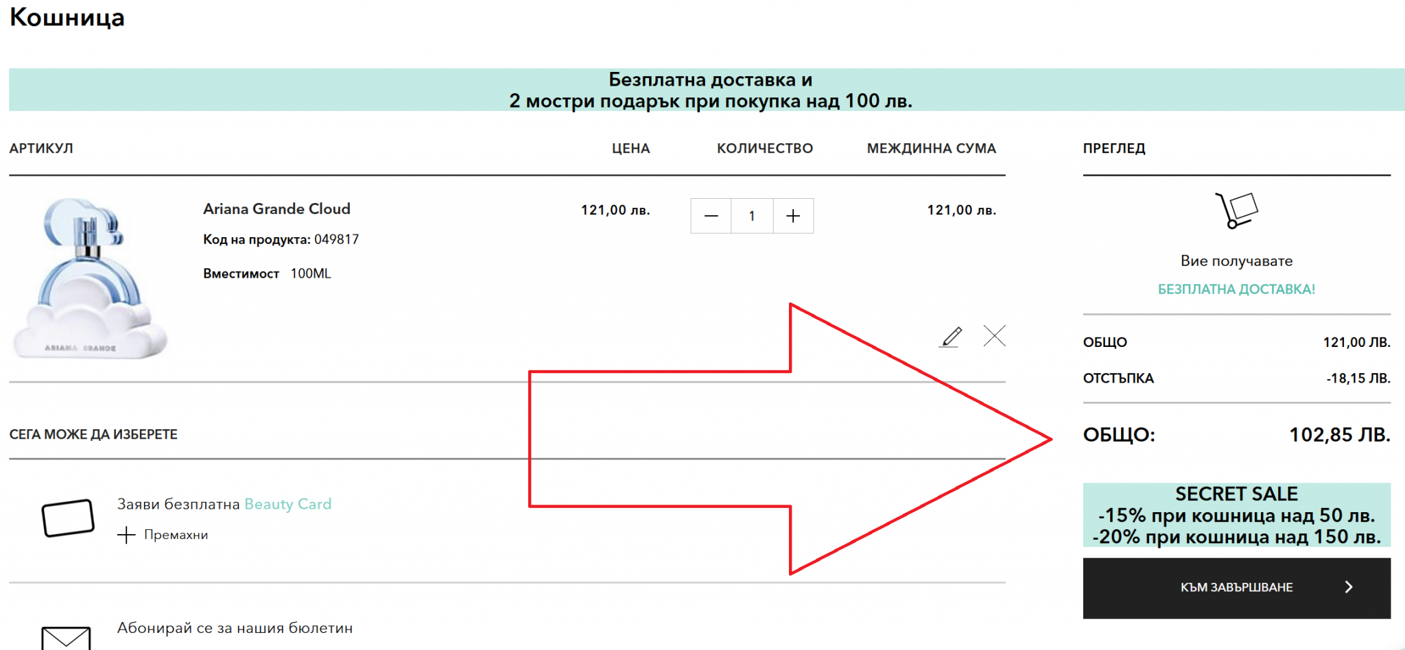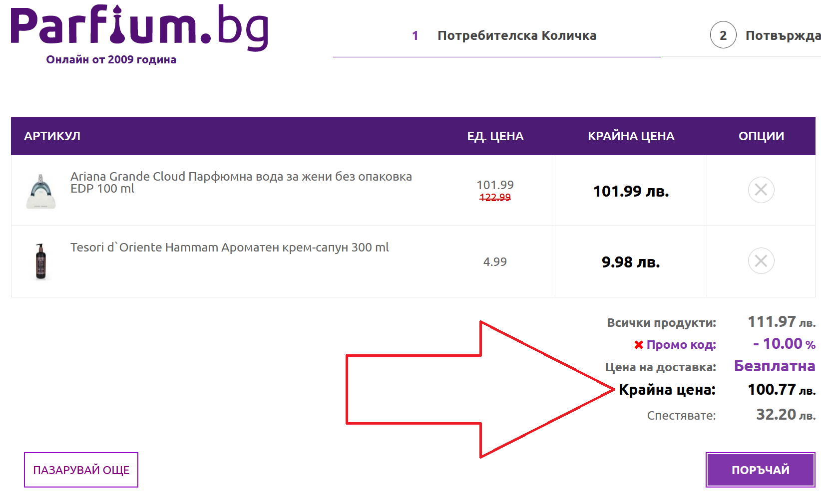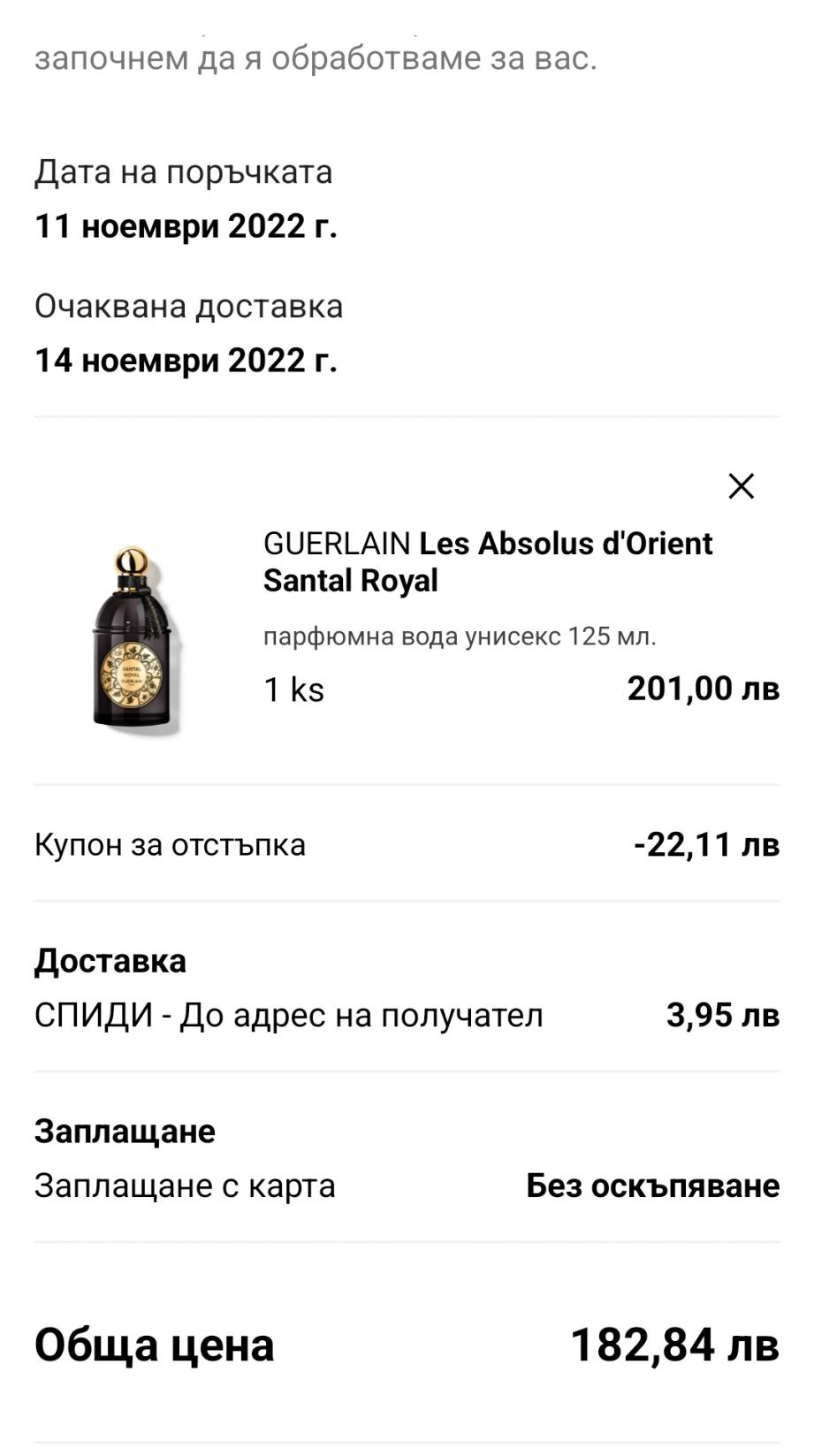 106 лв. беше за 75 мл. Седя ми в кошницата няколко дни.
