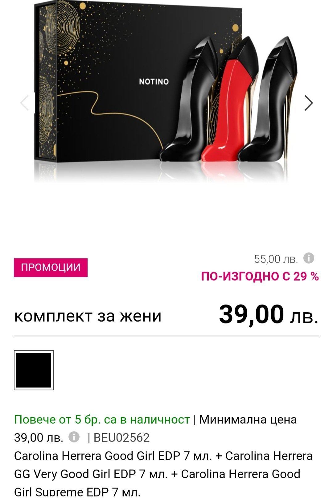Здравейте, търся Carolina herrera good girl légère на изгодна цена (може и тестер). Ако го видите на добра цена, моля споделете. Благодаря!