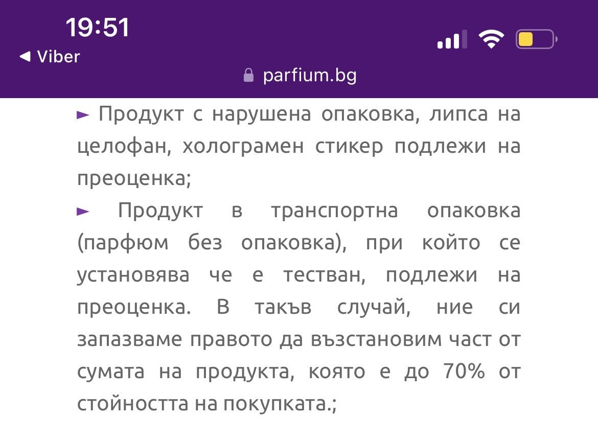 ами преценката е тяхна, за отворен и тестван парфюм ми върнаха 80%
