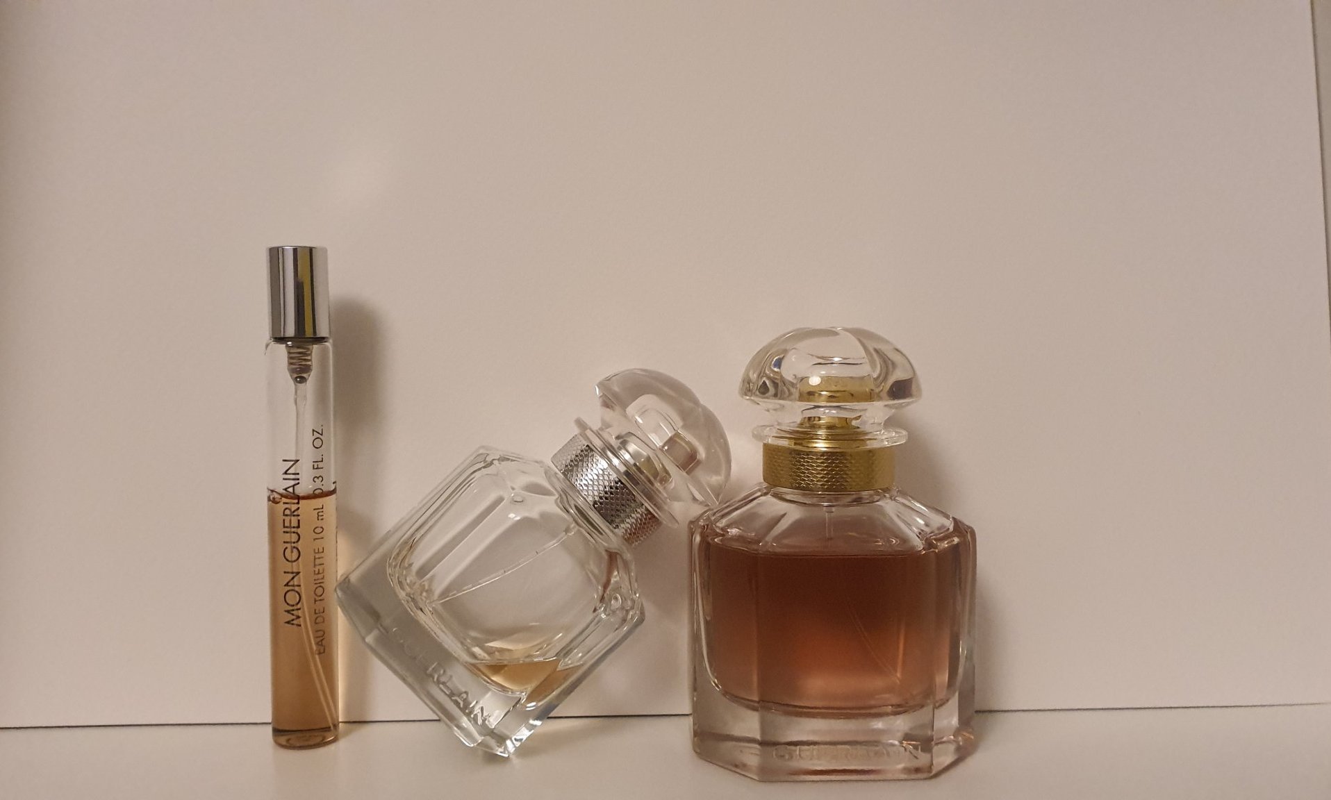 И за да не ме обвини някой, че може би аз никога не съм имала Mon Guerlain, ето наличните ми в момента вкъщи: