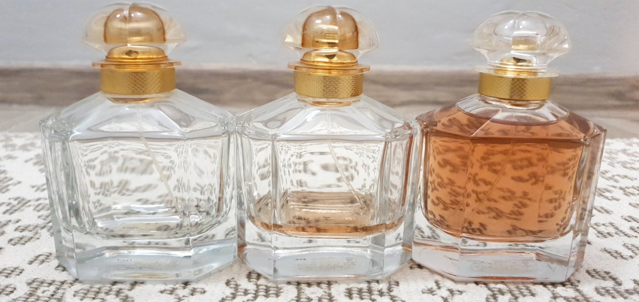 Още при отварянето на бутилката забелязах, че капачката беше значително по-лека от всички останали бутилки, които имам на Min Guerlain.