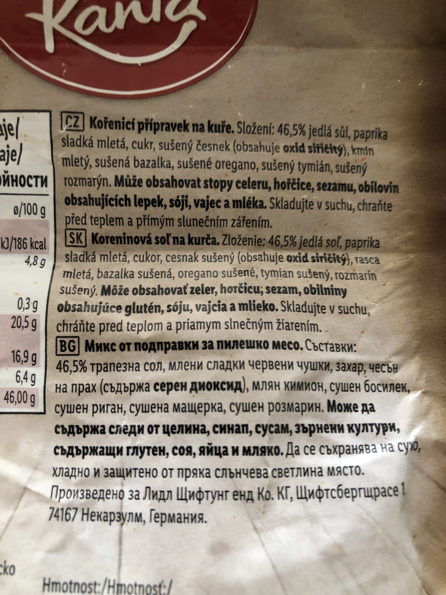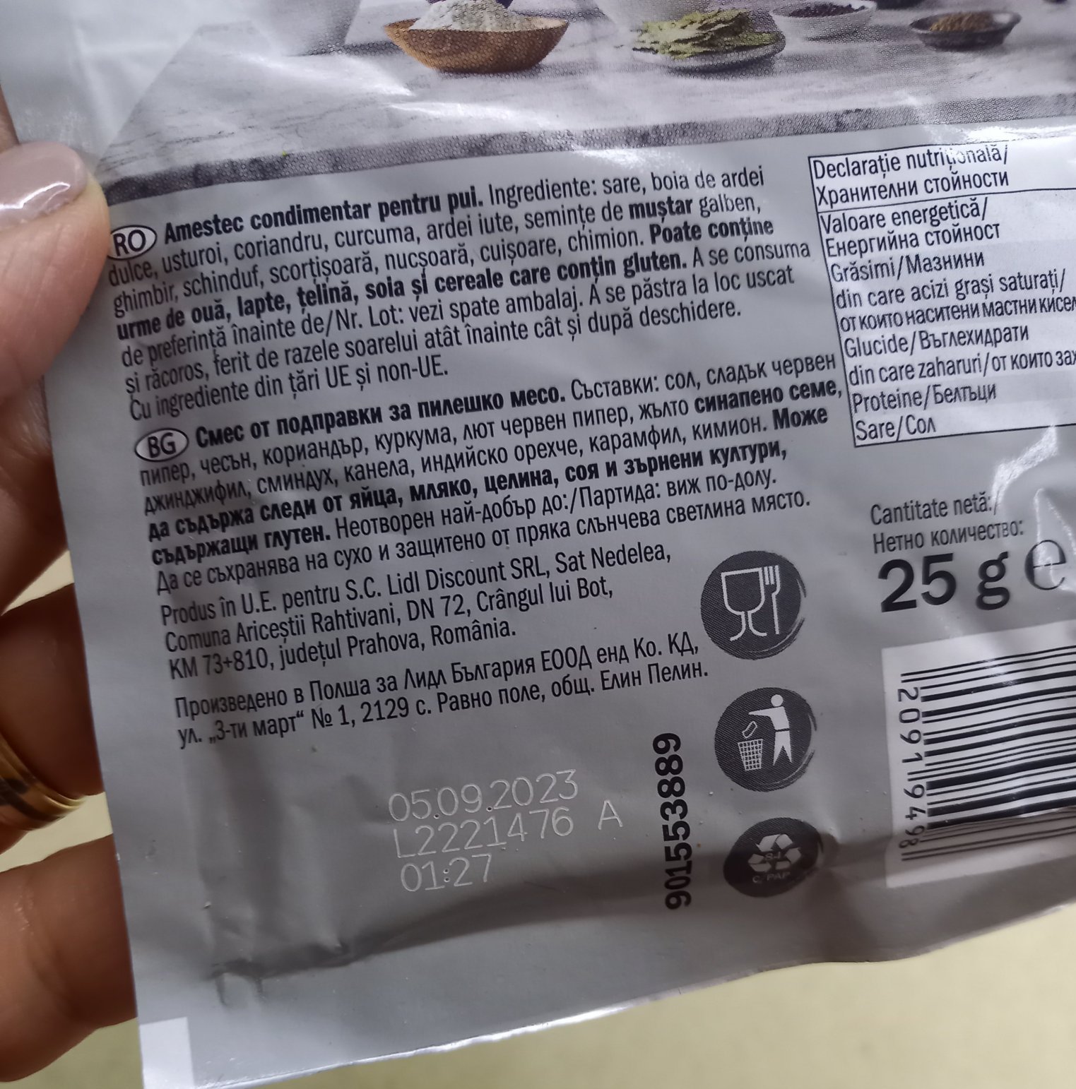 Може ли някой да ми снима състава на подправката за пиле от лидл?