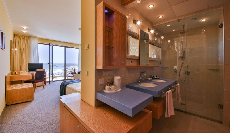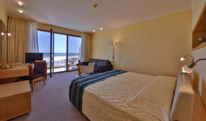 На плажа, невероятна гледка дори и от стаите странично море. Басейните вътрешен, външни са с минерална вода. Паркоместата не стигат за всички настанени, но наблизо има паркинг. Плажа - недостатъчен за всички, има на места камъни/скали в морето, където може да си обелиш колената, лактите или лицето и трябва да се внимава при плуване. Храната - няма да останете гладни, но ако закъснеете може да ядете каквото е останало. Безалкохолните и българския алкохол са със съмнителен произход. За мен хотела е подходящ за почивка извън сезона.