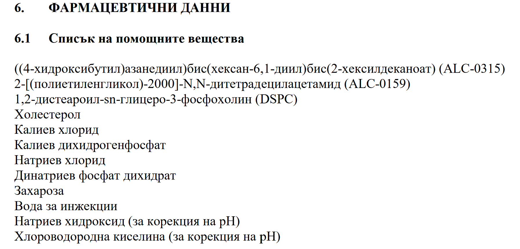 За повече точност и да сме съвсем коректни,  ето списък на помощните вещества във ваксинатна на Пфайзер,  в т.6.1, стр.20 :